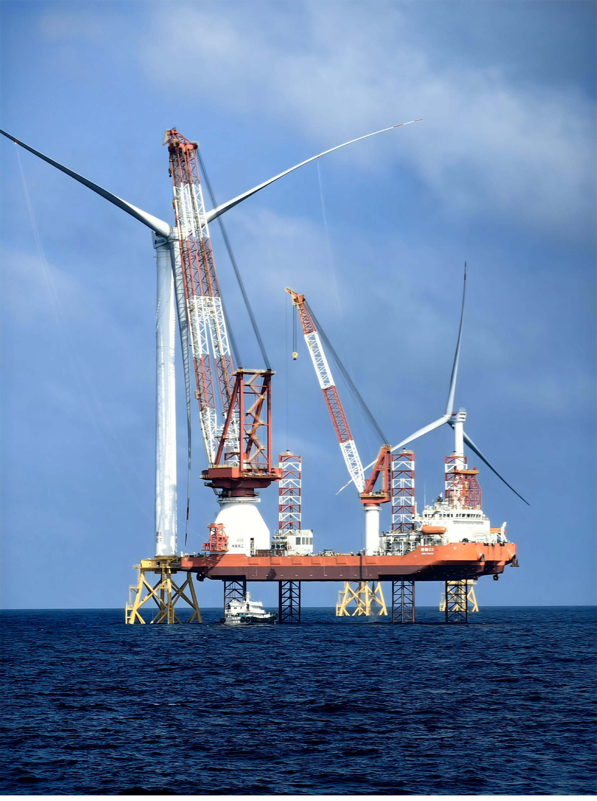 “精銦03”是專門針對(duì)南海風(fēng)場的特點(diǎn)設(shè)計(jì)建造,綜合兼顧了施工能力和使用費(fèi)效的平衡;其核心作業(yè)裝備升降系統(tǒng)由我司自主設(shè)計(jì)生產(chǎn),擁有全部知識(shí)產(chǎn)權(quán);主起重機(jī)采用直徑11.5m整體式轉(zhuǎn)盤軸承,采用了世界超大型整體式軸承。同時(shí),“精銦03”超前引進(jìn)油電混合動(dòng)力能源管理系統(tǒng)和技術(shù),可實(shí)現(xiàn)全天候低碳綠色環(huán)保作業(yè),為國內(nèi)首座油電混合動(dòng)力的海上風(fēng)電安裝平臺(tái)。