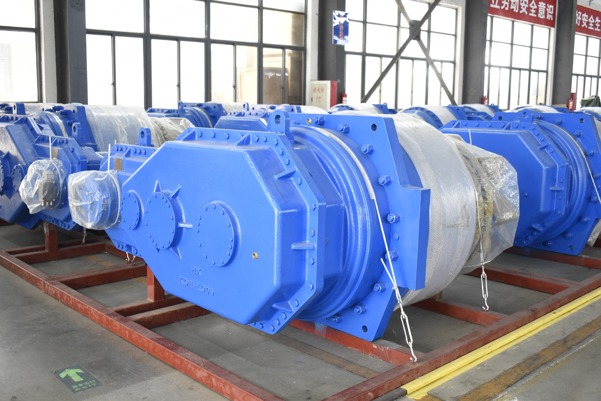 一套齒輪齒條升降系統(tǒng)一般由多個升降單元及電氣控制系統(tǒng)構成,升降單元數(shù)量根據(jù)平臺所要求的舉升能力和平臺總體要求加以確定。升降單元由行星減速箱、平行減速箱、爬升齒輪、電機、制動器等部件組成。動力通過馬達驅動齒輪減速箱,傳遞給與樁腿齒條嚙合的爬升齒輪帶動平臺完成升降。按照驅動方式,齒輪升降系統(tǒng)分為電機驅動齒輪齒條式和液壓驅動齒輪齒條式。